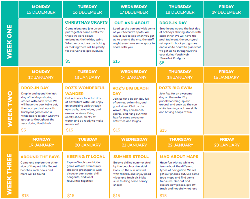 Download the Christchurch Youth Hub Summer Holiday 2025/2026 Programme Flyer here!
